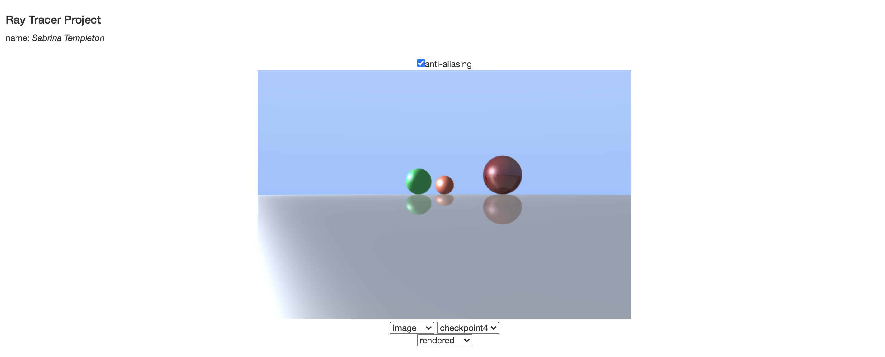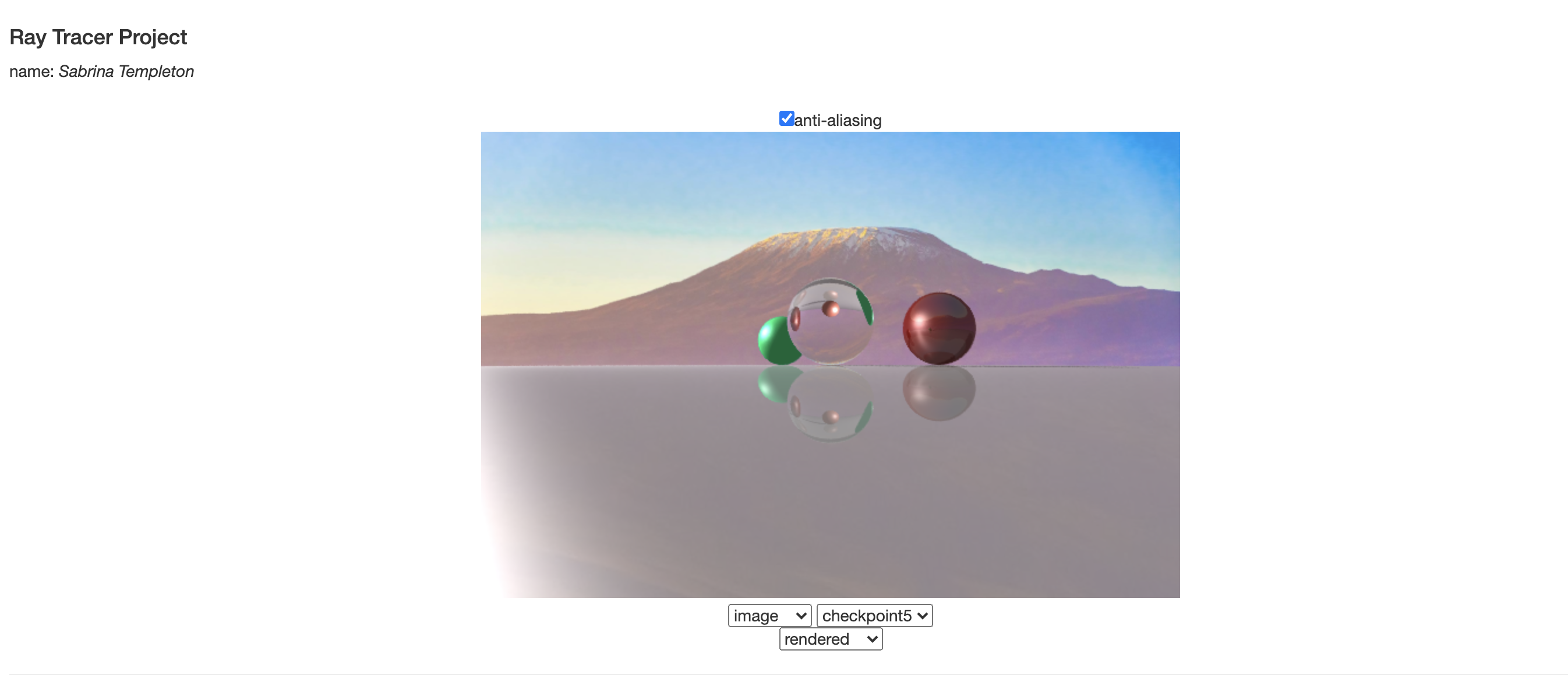 For anti-aliasing, I created a loop that has a number of samples to take if we are doing anti-aliasing. The first time the loop runs, it will take the regular sample at the center of the pixel. Any time after that, it takes a sample at a random point within the pixel. It then averages the colors it gets from each sample to make a smoother effect.