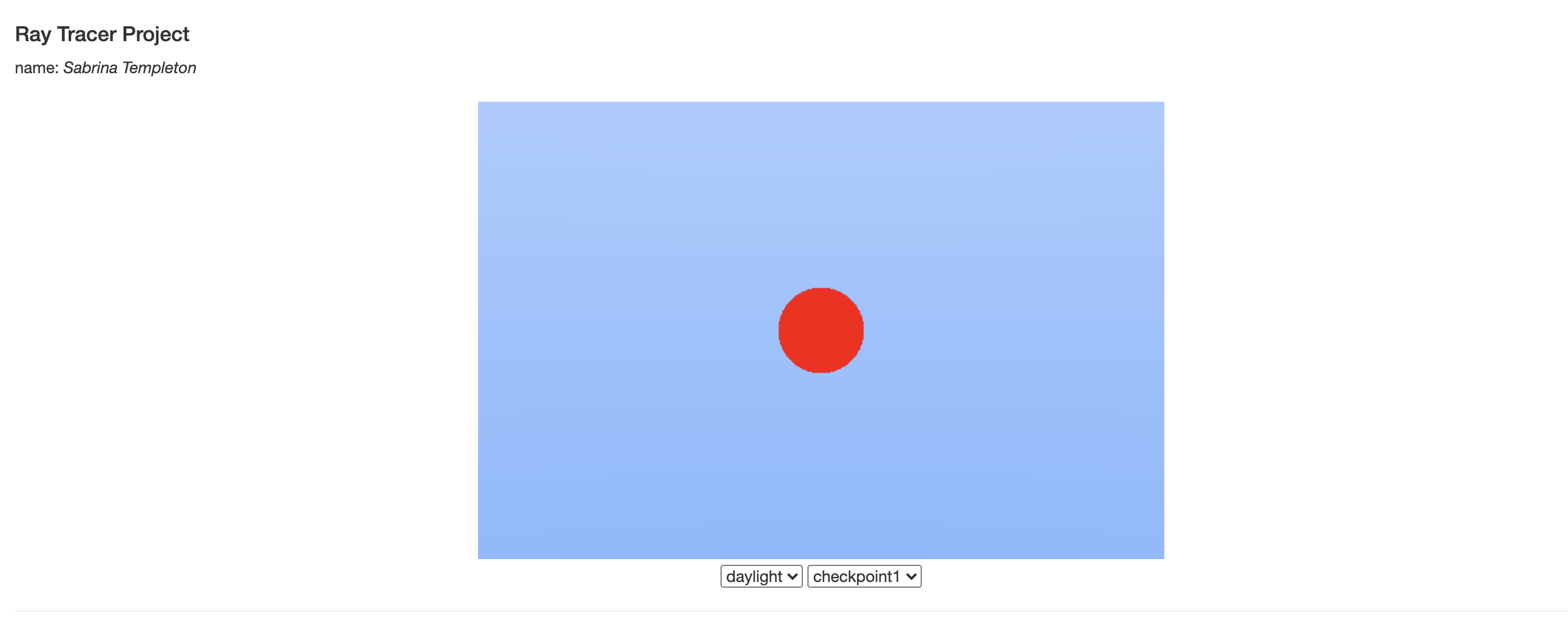 I set each scene as described in the instructions. For checkpoint one, there is a simple red sphere.