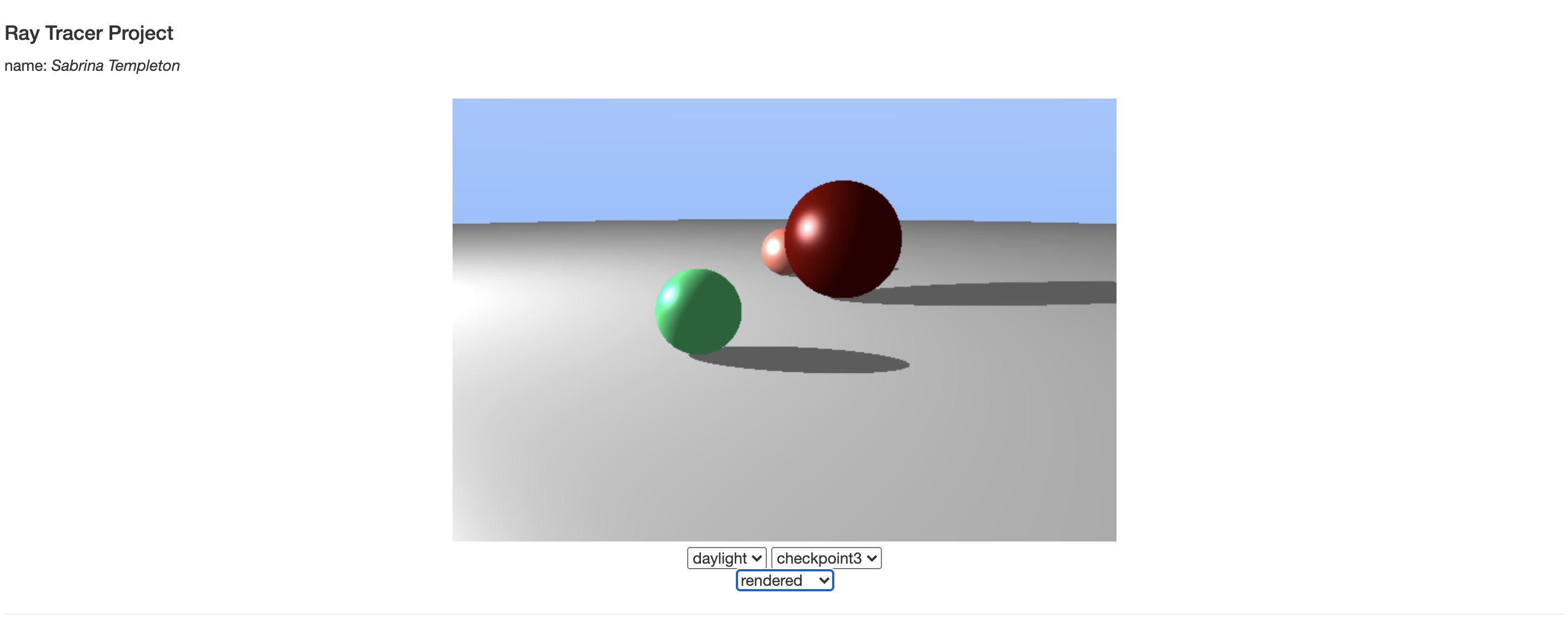 For checkpoint three, there are a few shaded spheres with shadows calculated from shadow rays and shaded with the blinn-phong shading model.