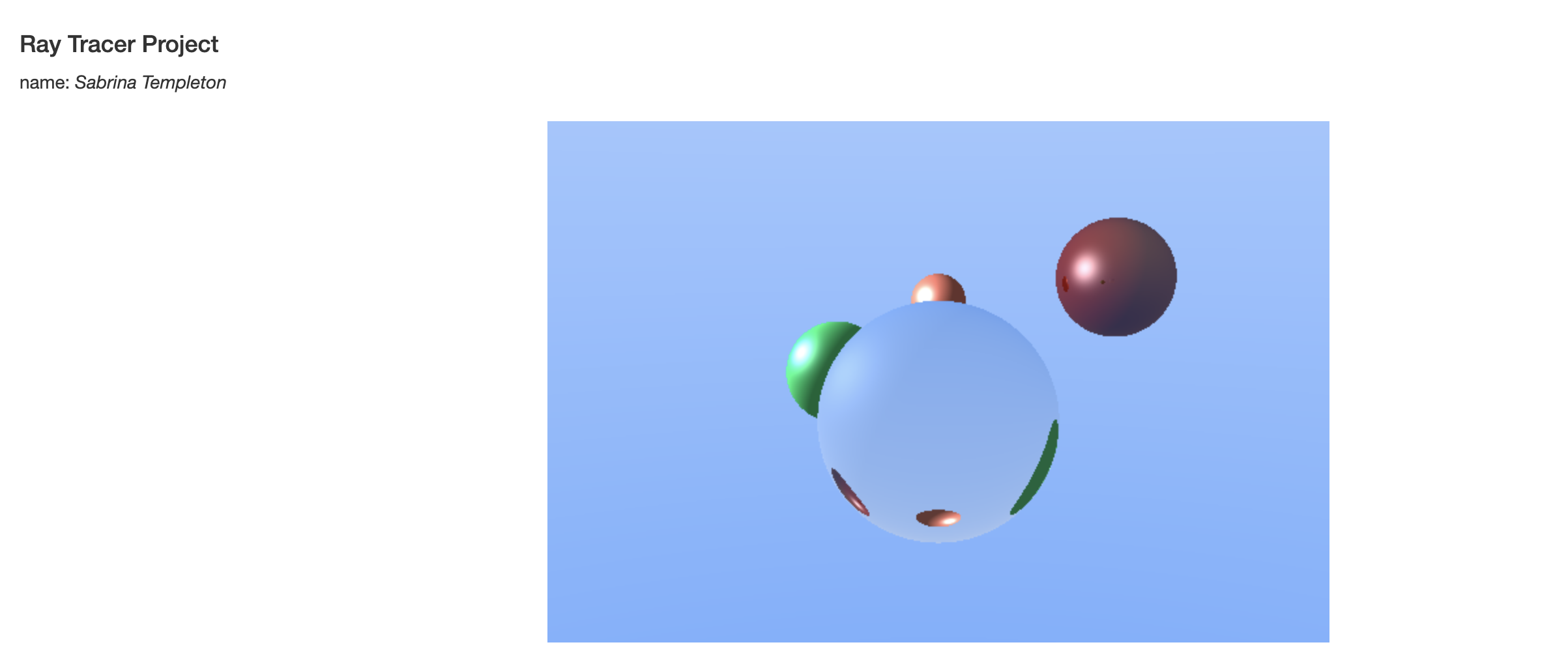 The ray tracer I wrote takes in input as spheres, or later, triangle meshes and draws them in a scene with lights. The intersect function does the main work: for spheres, it uses a quadratic formula to find the closest intersection point within a reasonable range. Some logic around this function allows it to deal with multiple shapes, keeping the closest intersection as the one to calculate color. From there, the color function takes over. The color function calculates color based on material color and uses the Blinn-Phong model to shade this color according to the lights present in the scene. It calculates shadows by sending another way from the last intersection point to the light to check if it is being blocked. Then, if the material is reflective or refractive, ray scattering commences. A scatter function is called which calls either the reflect or refract functions, accordingly. This calculates another ray in a relevant direction to get a color from. This is all done recursively, so if the second ray hits a reflective material, the process will continue until maximum depth is reached or a diffuse material is hit.